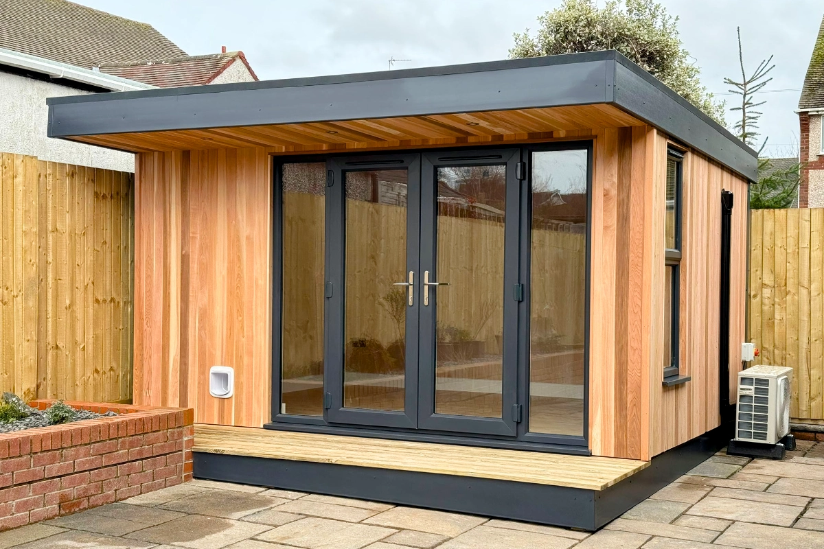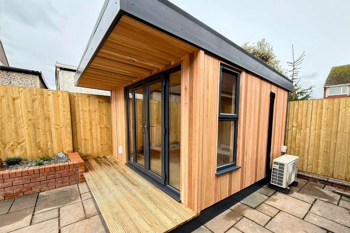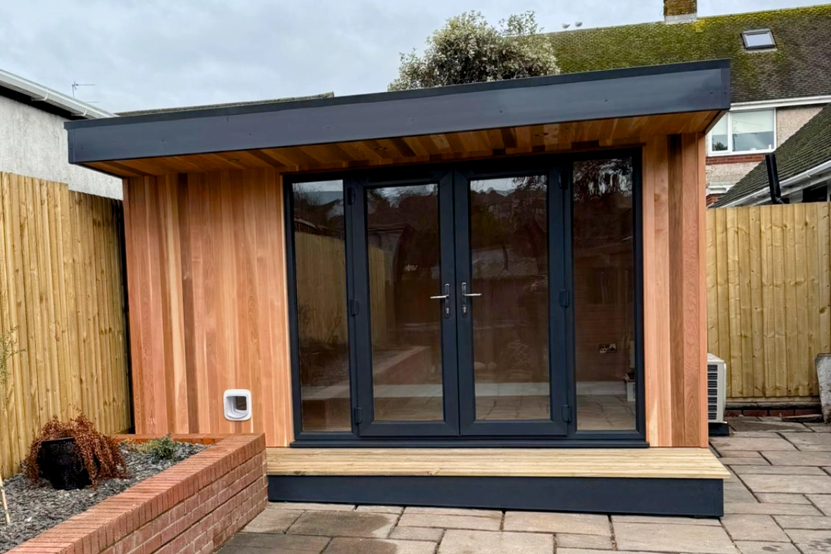 The structure was engineered to deliver strength, durability and excellent thermal performance. The floor, walls and roof were installed with 100mm of acoustic and PIR insulation, ensuring the garden room remains comfortable and energy efficient throughout the year.